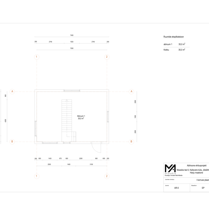 The design of the auxiliary building is primarily based on the suitability of the building for the environment and the rational use of space. The auxiliary building is designed as a two-story building with a 20-degree roof pitch and a height of 4.95m above the ground. On the first floor there is a room for storing agricultural implements. On the second floor - a room for storing seedlings.